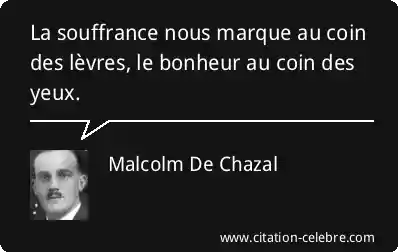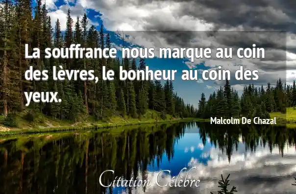 La souffrance nous marque au coin des lèvres, le bonheur au coin des yeux.