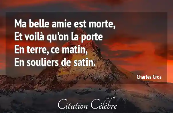 Ma belle amie est morte,Et voilà qu'on la porteEn terre, ce matin,En souliers de satin.