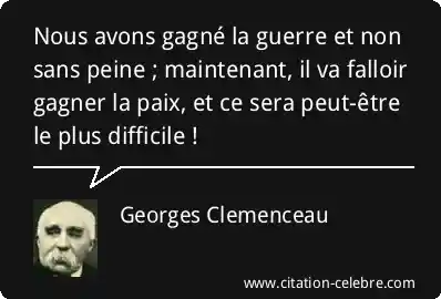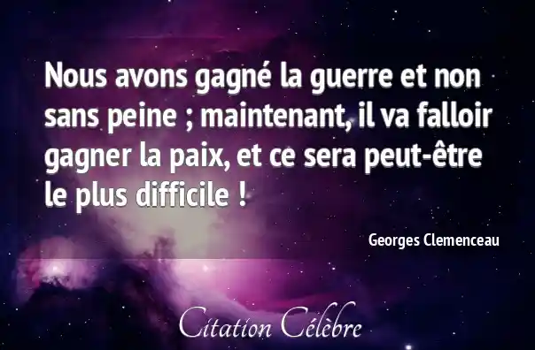 Nous avons gagné la guerre et non sans peine ; maintenant, il va falloir gagner la paix, et ce sera peut-être le plus difficile !