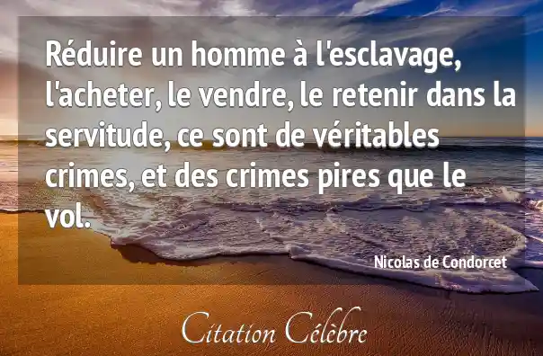 Réduire un homme à l'esclavage, l'acheter, le vendre, le retenir dans la servitude, ce sont de véritables crimes, et des crimes pires que le vol.