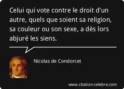 Celui qui vote contre le droit d'un autre, quels que soient sa religion, sa couleur ou son sexe, a dès lors abjuré les siens.