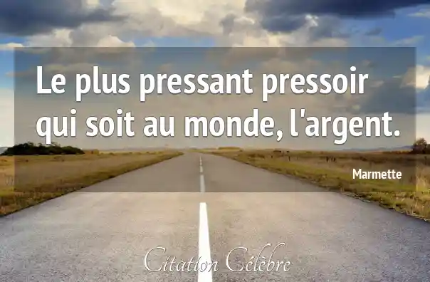 Le plus pressant pressoir qui soit au monde, l'argent.