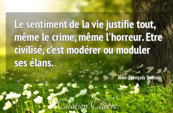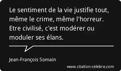Le sentiment de la vie justifie tout, même le crime, même l'horreur. Etre civilisé, c'est modérer ou moduler ses élans.