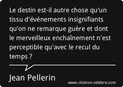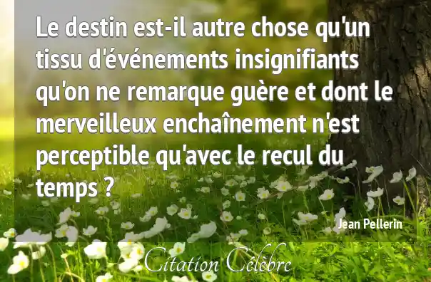 Le destin est-il autre chose qu'un tissu d'événements insignifiants qu'on ne remarque guère et dont le merveilleux enchaînement n'est perceptible qu'avec le recul du temps ?