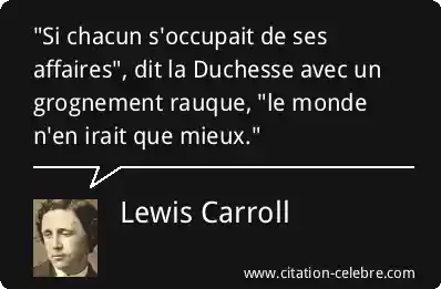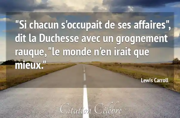 "Si chacun s'occupait de ses affaires", dit la Duchesse avec un grognement rauque, "le monde n'en irait que mieux."