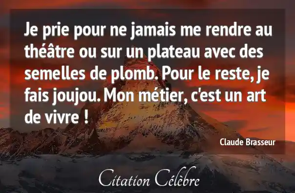 Je prie pour ne jamais me rendre au théâtre ou sur un plateau avec des semelles de plomb. Pour le reste, je fais joujou. Mon métier, c'est un art de vivre !