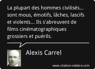 La plupart des hommes civilisés... sont mous, émotifs, lâches, lascifs et violents... Ils s'abreuvent de films cinématographiques grossiers et puérils.