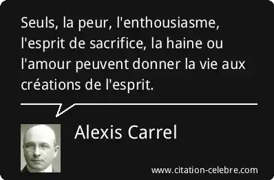 Seuls, la peur, l'enthousiasme, l'esprit de sacrifice, la haine ou l'amour peuvent donner la vie aux créations de l'esprit.