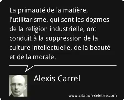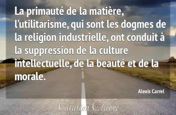 La primauté de la matière, l'utilitarisme, qui sont les dogmes de la religion industrielle, ont conduit à la suppression de la culture intellectuelle, de la beauté et de la morale.