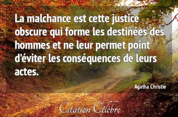 La malchance est cette justice obscure qui forme les destinées des hommes et ne leur permet point d'éviter les conséquences de leurs actes.