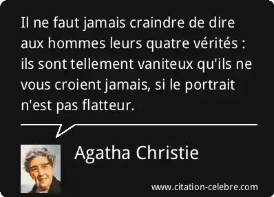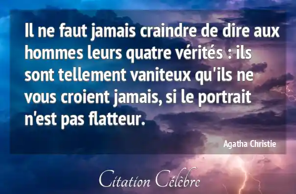 Il ne faut jamais craindre de dire aux hommes leurs quatre vérités : ils sont tellement vaniteux qu'ils ne vous croient jamais, si le portrait n'est pas flatteur.