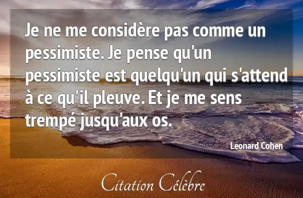 Je ne me considère pas comme un pessimiste. Je pense qu'un pessimiste est quelqu'un qui s'attend à ce qu'il pleuve. Et je me sens trempé jusqu'aux os.
