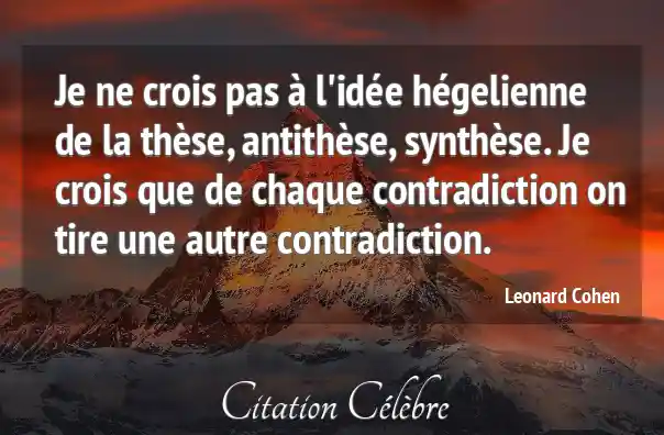Je ne crois pas à l'idée hégelienne de la thèse, antithèse, synthèse. Je crois que de chaque contradiction on tire une autre contradiction.