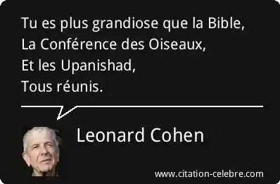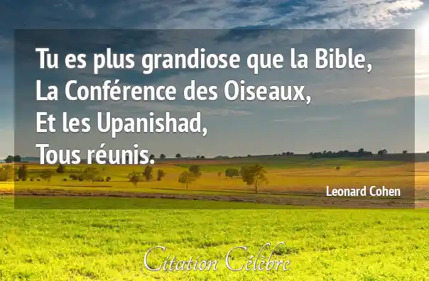 Tu es plus grandiose que la Bible,La Conférence des Oiseaux,Et les Upanishad,Tous réunis.