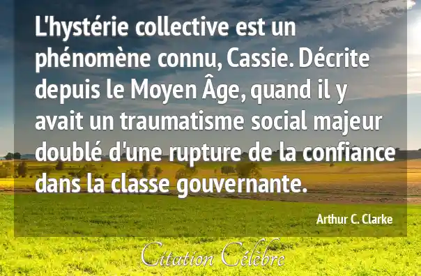 L'hystérie collective est un phénomène connu, Cassie. Décrite depuis le Moyen Âge, quand il y avait un traumatisme social majeur doublé d'une rupture de la confiance dans la classe gouvernante.