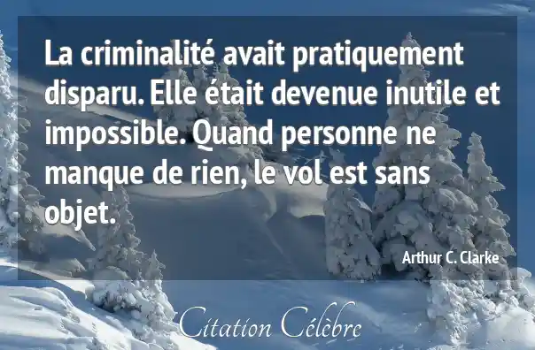 La criminalité avait pratiquement disparu. Elle était devenue inutile et impossible. Quand personne ne manque de rien, le vol est sans objet.