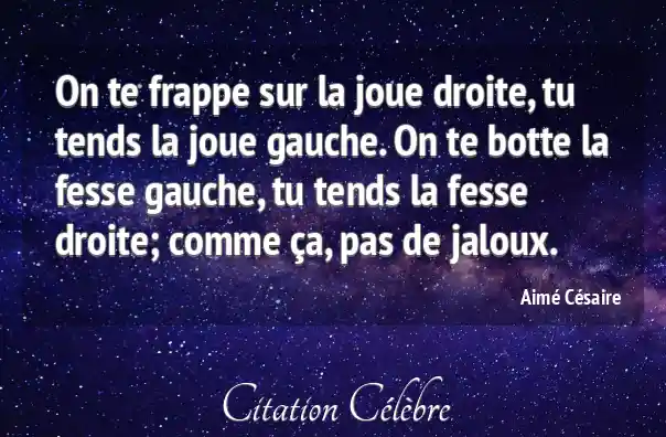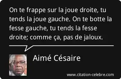 On te frappe sur la joue droite, tu tends la joue gauche. On te botte la fesse gauche, tu tends la fesse droite; comme ça, pas de jaloux.