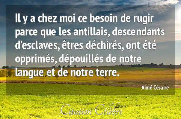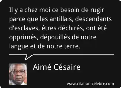 Il y a chez moi ce besoin de rugir parce que les antillais, descendants d'esclaves, êtres déchirés, ont été opprimés, dépouillés de notre langue et de notre terre.