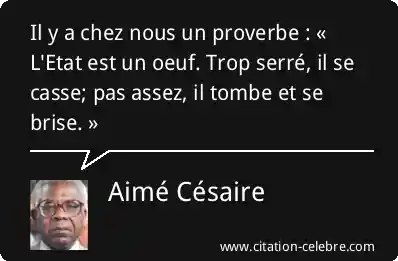 Il y a chez nous un proverbe : « L'Etat est un oeuf. Trop serré, il se casse; pas assez, il tombe et se brise. »