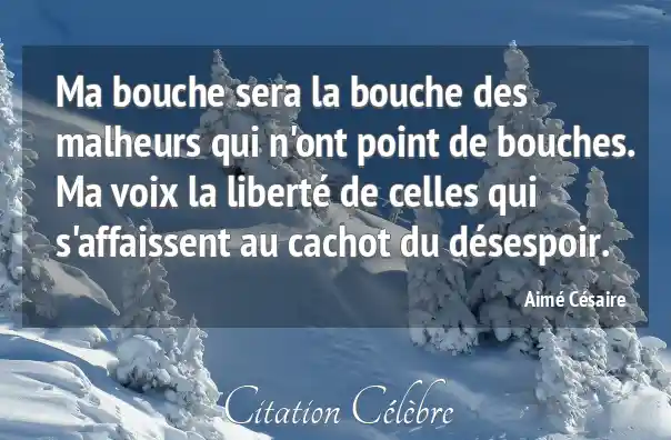 Ma bouche sera la bouche des malheurs qui n'ont point de bouches. Ma voix la liberté de celles qui s'affaissent au cachot du désespoir.
