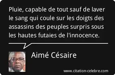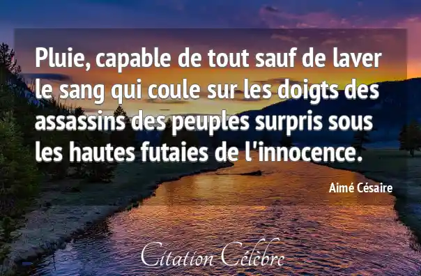 Pluie, capable de tout sauf de laver le sang qui coule sur les doigts des assassins des peuples surpris sous les hautes futaies de l'innocence.