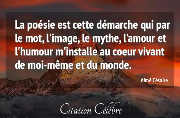 La poésie est cette démarche qui par le mot, l'image, le mythe, l'amour et l'humour m'installe au coeur vivant de moi-même et du monde.
