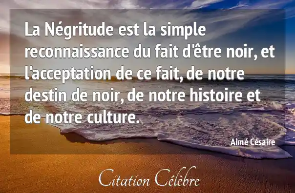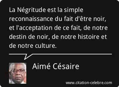 La Négritude est la simple reconnaissance du fait d'être noir, et l'acceptation de ce fait, de notre destin de noir, de notre histoire et de notre culture.
