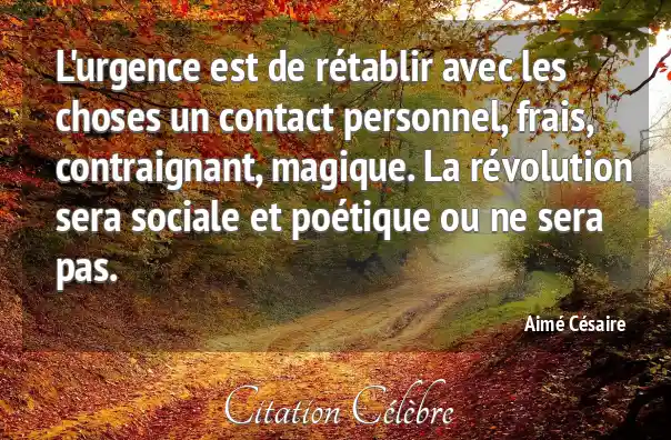 L'urgence est de rétablir avec les choses un contact personnel, frais, contraignant, magique. La révolution sera sociale et poétique ou ne sera pas.
