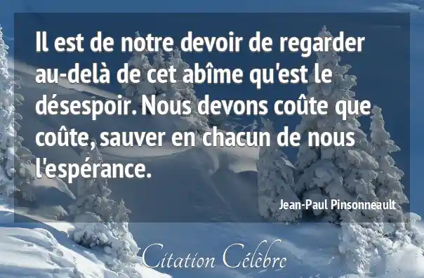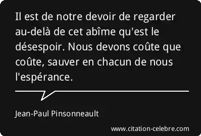 Il est de notre devoir de regarder au-delà de cet abîme qu'est le désespoir. Nous devons coûte que coûte, sauver en chacun de nous l'espérance.