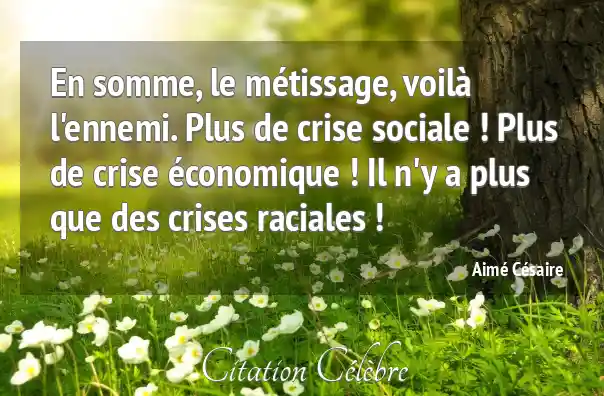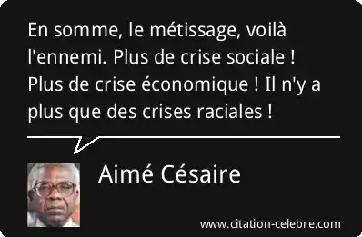En somme, le métissage, voilà l'ennemi. Plus de crise sociale ! Plus de crise économique ! Il n'y a plus que des crises raciales !