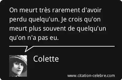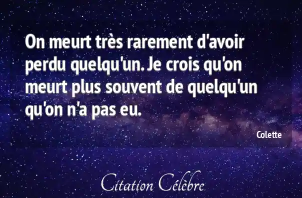 On meurt très rarement d'avoir perdu quelqu'un. Je crois qu'on meurt plus souvent de quelqu'un qu'on n'a pas eu.
