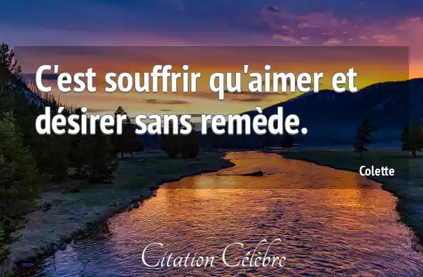 C'est souffrir qu'aimer et désirer sans remède.