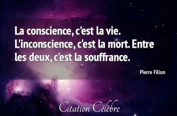 La conscience, c'est la vie. L'inconscience, c'est la mort. Entre les deux, c'est la souffrance.