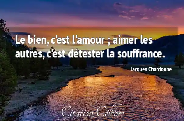 Le bien, c'est l'amour ; aimer les autres, c'est détester la souffrance.