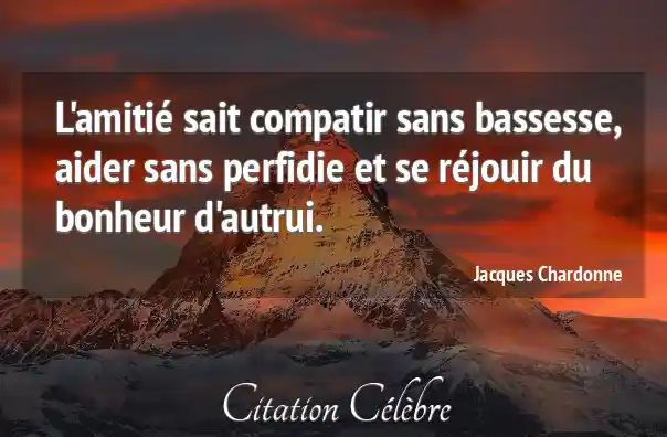 L'amitié sait compatir sans bassesse, aider sans perfidie et se réjouir du bonheur d'autrui.