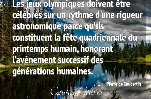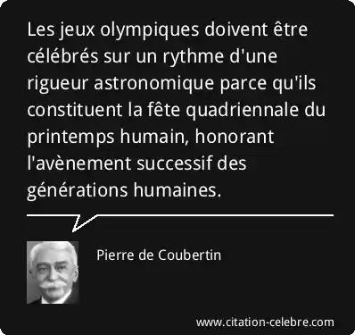 Les jeux olympiques doivent être célébrés sur un rythme d'une rigueur astronomique parce qu'ils constituent la fête quadriennale du printemps humain, honorant l'avènement successif des générations humaines.