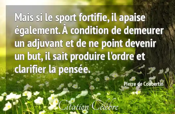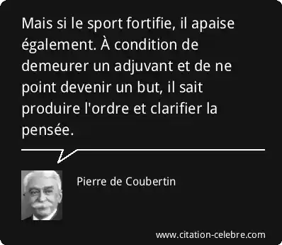 Mais si le sport fortifie, il apaise également. À condition de demeurer un adjuvant et de ne point devenir un but, il sait produire l'ordre et clarifier la pensée.