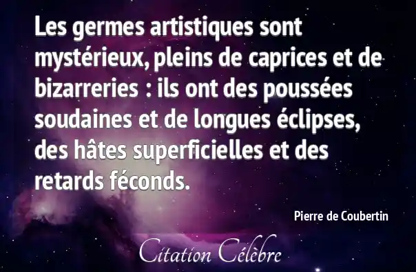 Les germes artistiques sont mystérieux, pleins de caprices et de bizarreries : ils ont des poussées soudaines et de longues éclipses, des hâtes superficielles et des retards féconds.