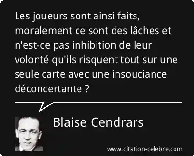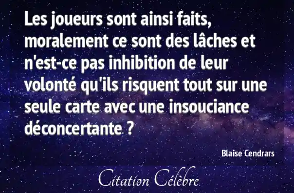Les joueurs sont ainsi faits, moralement ce sont des lâches et n'est-ce pas inhibition de leur volonté qu'ils risquent tout sur une seule carte avec une insouciance déconcertante ?