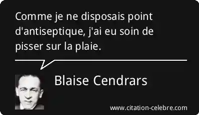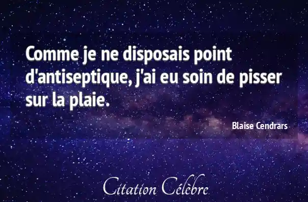 Comme je ne disposais point d'antiseptique, j'ai eu soin de pisser sur la plaie.