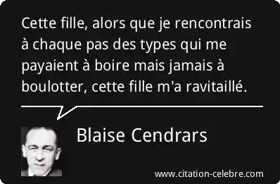 Cette fille, alors que je rencontrais à chaque pas des types qui me payaient à boire mais jamais à boulotter, cette fille m'a ravitaillé.