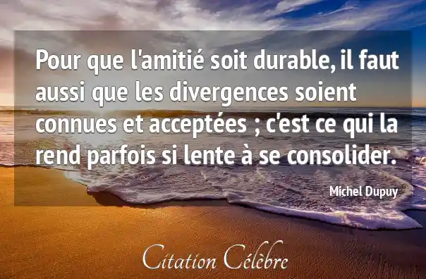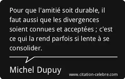 Pour que l'amitié soit durable, il faut aussi que les divergences soient connues et acceptées ; c'est ce qui la rend parfois si lente à se consolider.