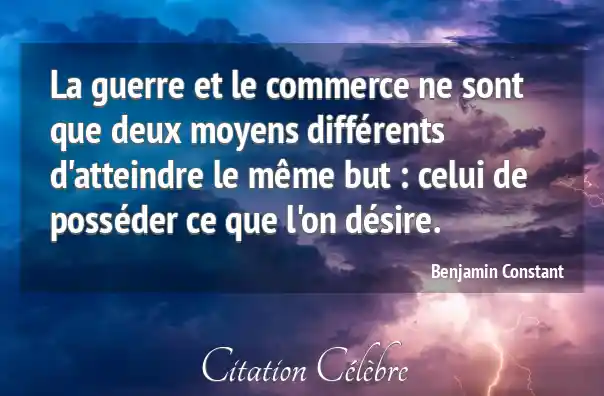La guerre et le commerce ne sont que deux moyens différents d'atteindre le même but : celui de posséder ce que l'on désire.