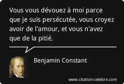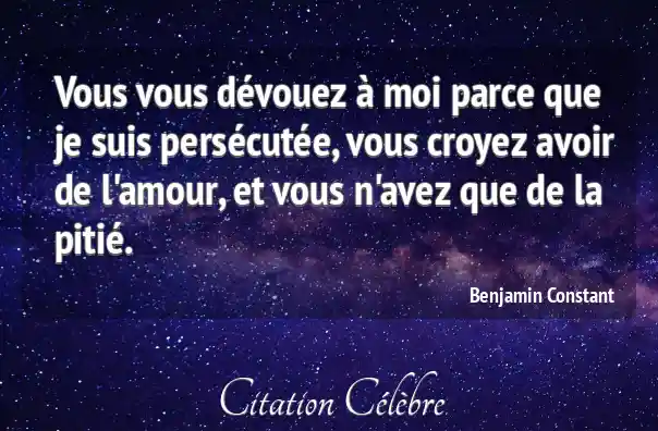 Vous vous dévouez à moi parce que je suis persécutée, vous croyez avoir de l'amour, et vous n'avez que de la pitié.