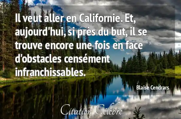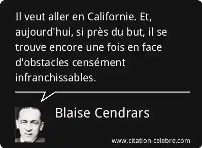 Il veut aller en Californie. Et, aujourd'hui, si près du but, il se trouve encore une fois en face d'obstacles censément infranchissables.