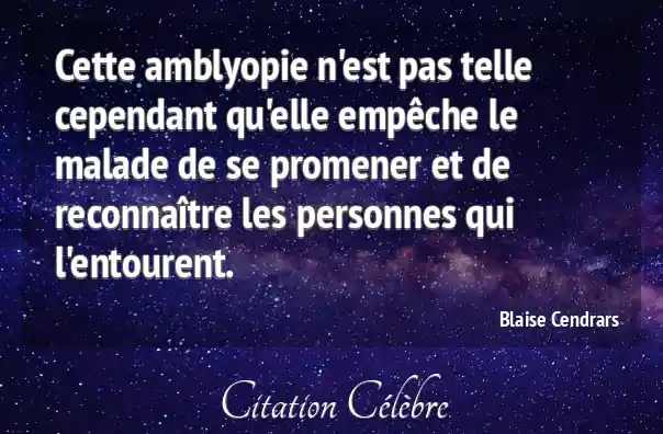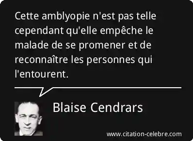 Cette amblyopie n'est pas telle cependant qu'elle empêche le malade de se promener et de reconnaître les personnes qui l'entourent.