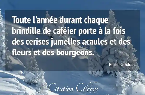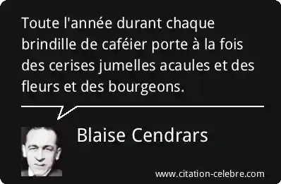 Toute l'année durant chaque brindille de caféier porte à la fois des cerises jumelles acaules et des fleurs et des bourgeons.