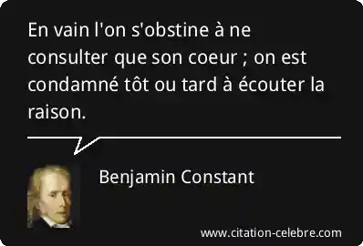 En vain l'on s'obstine à ne consulter que son coeur ; on est condamné tôt ou tard à écouter la raison.