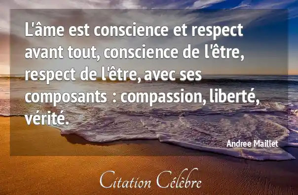 L'âme est conscience et respect avant tout, conscience de l'être, respect de l'être, avec ses composants : compassion, liberté, vérité.