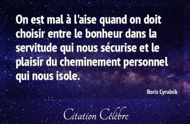 On est mal à l'aise quand on doit choisir entre le bonheur dans la servitude qui nous sécurise et le plaisir du cheminement personnel qui nous isole.